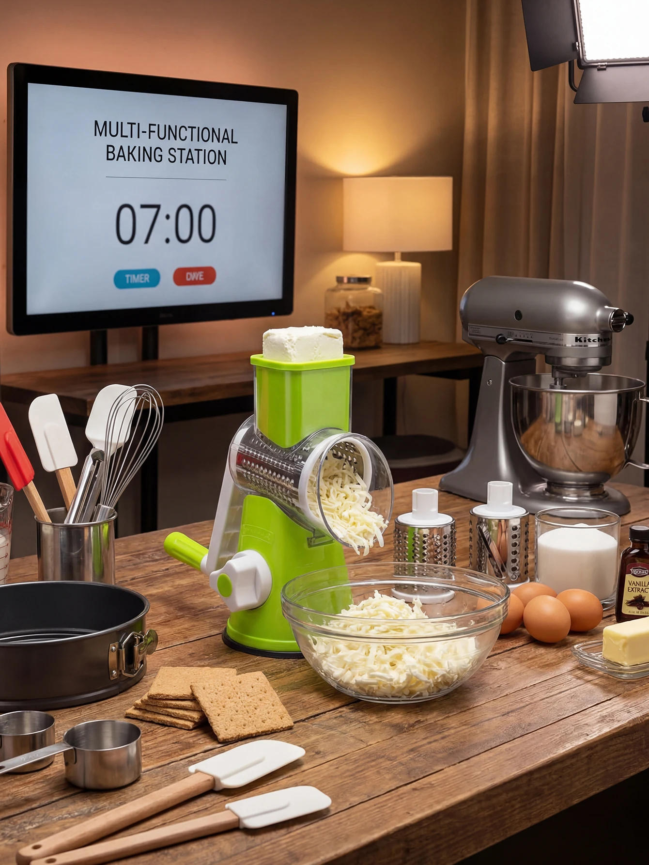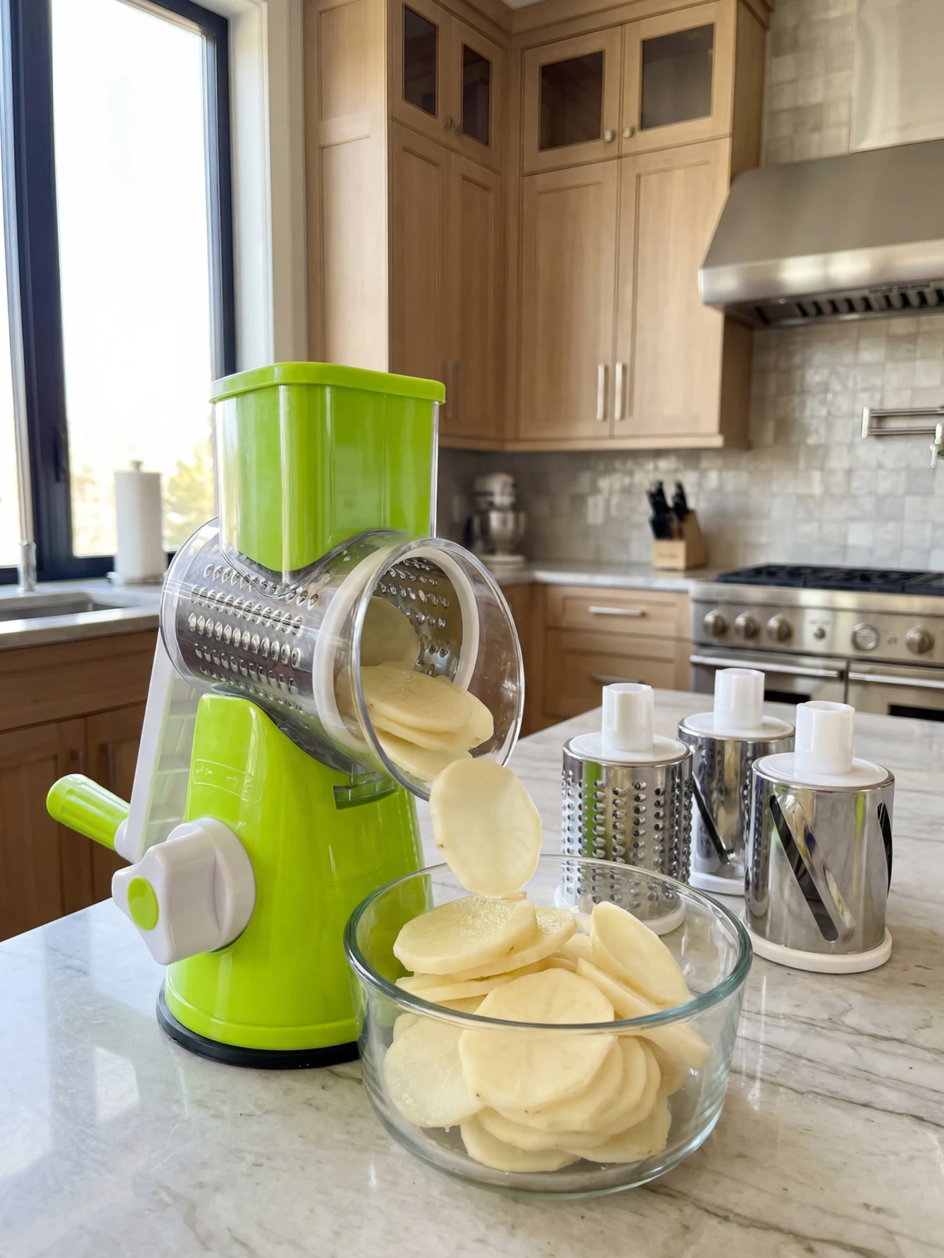 Rotary Cheese Grater with Handle - Vegetable Shredder with Well-designed Blades & Strong Suction Base,Round Mandoline Slicer &